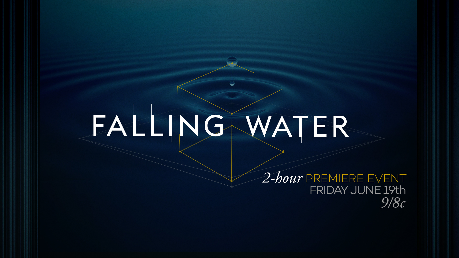 A couple design explorations for a promo of the show Falling Water on USA Network.